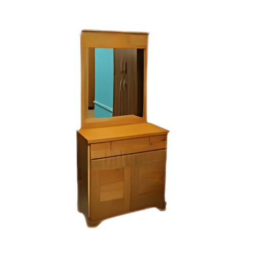 تسريحة أنيقة مصنوعة من خشب الزان الطبيعي، بمرآة وتصميم عملي للمكياج أو التخزين.