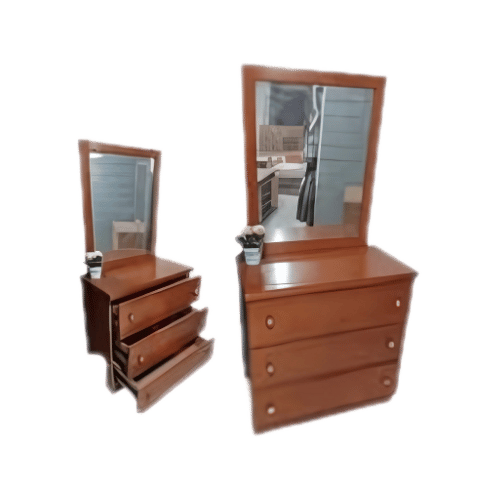 تسريحة خشبية بتصميم أرجل “عكاز”، تجمع بين الفخامة والوظيفة العملية، مثالية لغرف النوم.