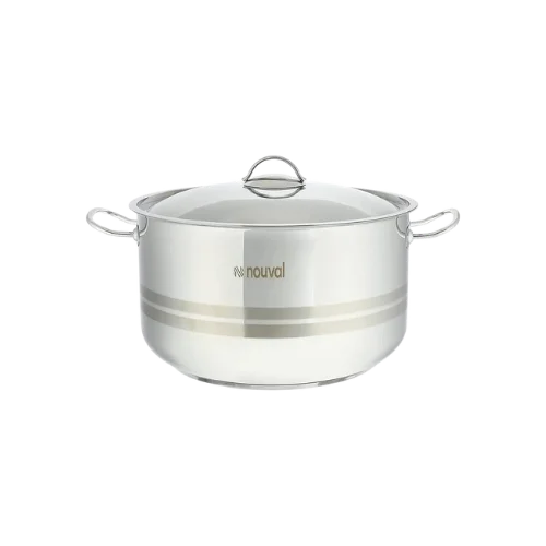 حلة من الستانلس من شركة نوفال حلة الطهي المصنوعة من الستانلس ستيل من شركة نوفال هي الخيار المثالي لإعداد الطعام بكل احترافية. تتميز بتصميم عصري وجودة عالية، مما يضمن لك تجربة طهي ممتازة. توفر توزيعًا متساويًا للحرارة، مما يساعد في طهي الطعام بشكل مثالي. الحلة مقاومة للصدأ وسهلة التنظيف، مما يجعلها خيارًا ممتازًا للاستخدام اليومي في المطبخ. مثالية للطهي على جميع أنواع المواقد بما في ذلك الغاز والكهرباء.