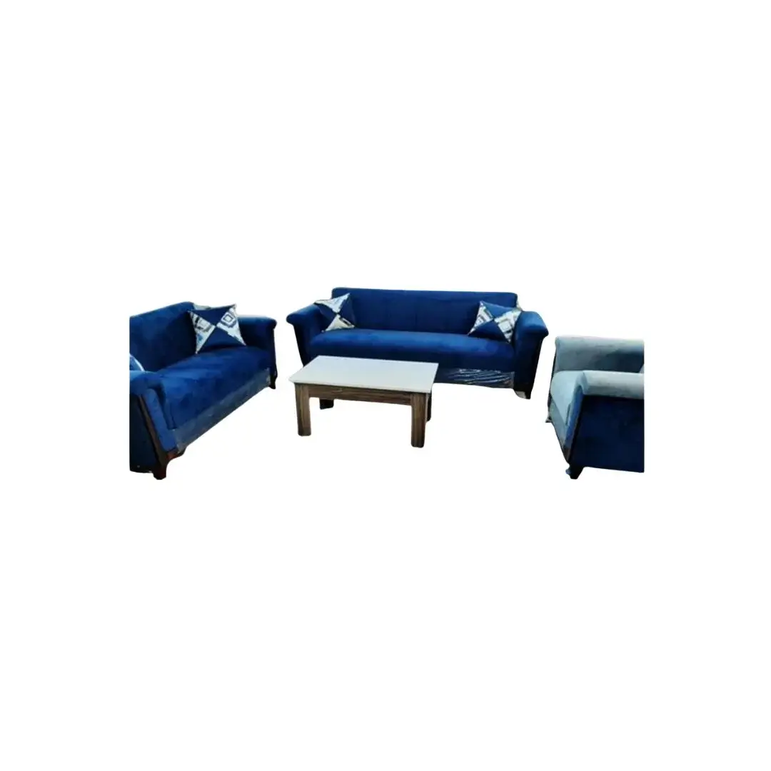 طقم صوفا بد ليفا يتميز بتصميمه العصري ولونه الأزرق الملكي الجذاب. مصمم بتنجيد مخملي ناعم ووسائد مزخرفة بأشكال هندسية تضيف لمسة عصرية أنيقة. الكنب يتحول بسهولة إلى سرير عملي، مما يجعله خيار مثالي لغرف المعيشة الحديثة التي تحتاج إلى مزيج من الجمال والوظيفة.
