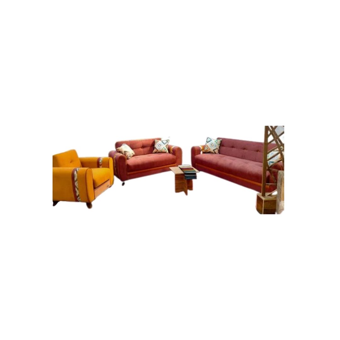 صوفا بد ميرانو بتصميم جريء وألوان مبهجة تضيف طاقة وحيوية لأي غرفة معيشة. يتكون الطقم من كنبات بلون نبيتي دافئ مع كرسي فردي بلون أصفر غني، وتفاصيل مزخرفة على الذراعين والوسائد. يتميز بسهولة التحول إلى سرير، ما يجعله مثاليًا للمساحات العائلية النشطة والعصرية.