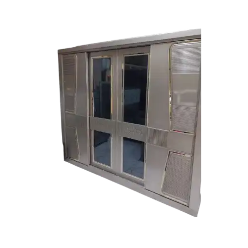 غرفة نوم أنيقة تحتوي على دولاب بمقاس 2.4 متر لتخزين ملابسك وتنظيمها، بالإضافة إلى سرير بمقاس 160 سم/متر لراحة نوم مثالية. كما تضم تسريحة عصرية مع مرآة، و2 كمود أنيقين لإضفاء لمسة من التنظيم والجمال على الغرفة