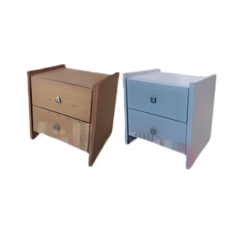 كمود أنيق ومتين من خشب الكبس، يحتوي على درجين للتخزين العملي بجانب السرير.