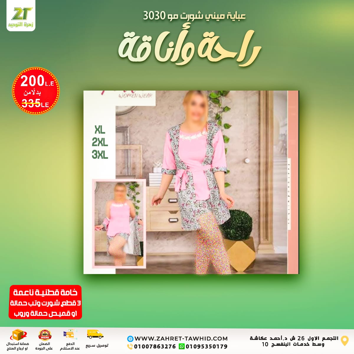 عباية ميني شورت موديل 3030 بيجامة ميني شورت ( 3 ) قطع شور...